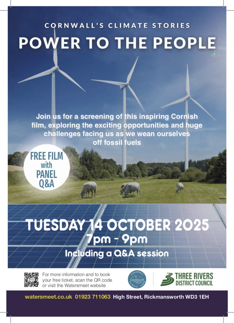 Three Rivers District Council is holding a film screening and Q&A panel discussion taking place at Watersmeet on 14 October.